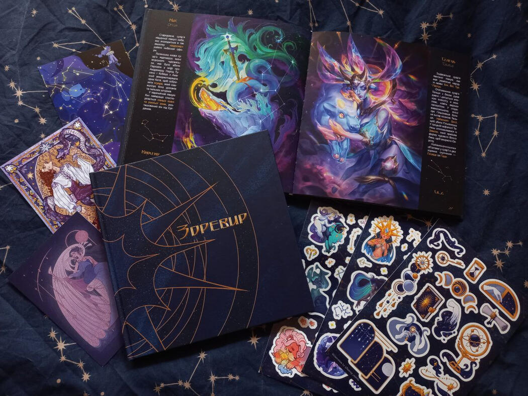 Зоревир: Крізь Всесвіт — благодійний артбук, у якому будуть зібрані ілюстрації персоніфікацій космічних об'єктів. Сюди входять Сонячна Система, зорі, туманності, галактики та інші відомі об'єкти.✦ Формат артбуку — квадратний. Ілюстрація займатиме більшу частину сторінки, лишаючи місце під текст про зображений об'єкт;